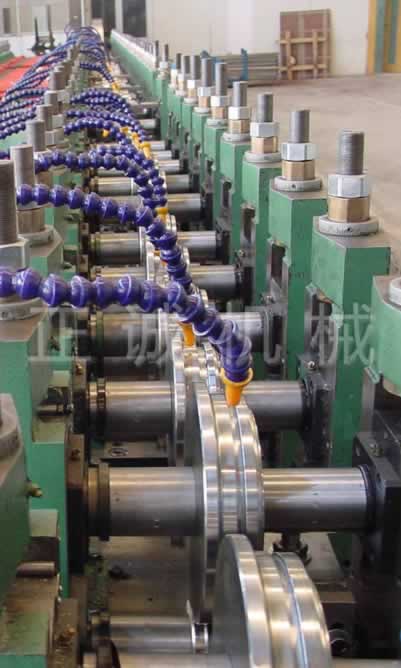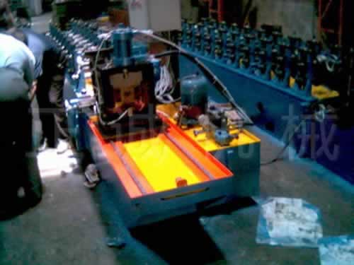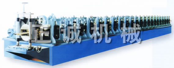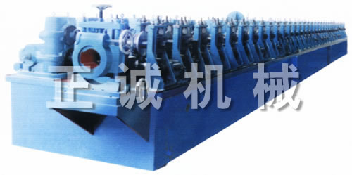 It is consisted of tension feeding-forming machine, straigthening device, hydraulic shearing or flying saw, transimission system, hydraulic mould, operation cabinet, unloading bench and others, suiting for producing cable try, vertical post for switch cabinet, elevator’s guide rail, C, Z and other sectional materials (feeding width 350mm, maximal thickness 3mm).