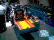 The equipment is consisted of feeding-forming machine, strainghtening head, hydraulic follow flying shearing machine, unloading bench, transmission system, cabinet, hydraulic moulds and others, suiting for producing lightgage steel joist, T type ceiling joist, roller shutter, pinch plate, automobile door and window and other sectional material (feeding width is 270mm, maximal thickness 1.5mm)